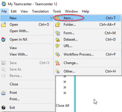 In Teamcenter werden Teile als „Items“ bzw. „Item Revisions“ bezeichnet. Das Item ist eine Art „Klammer“, welche die Revisionen zusammenfasst. Ein Item besitzt immer mindestens eine Revision. Die Sachnummer (Item-ID) wird beim Anlegen des Items vergeben und dann auf alle Revisionen vererbt, d.h. die Item-ID aller Revisionen ist immer gleich. Normalerweise kann eine vergebene Item-ID nicht auf normalem Weg geändert werden.