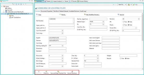 Sie können jetzt die Eigenschaften bearbeiten. Anschließend können Sie mit „Check-In“ die Änderungen speichern oder mit „Cancel Checkout“ verwerfen.