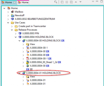 Anschließend wird unter dem Item eine zweite Revision „01“ angezeigt. Alle spezifizierenden Dokumente wie 3D-Modell (UGMASTER) oder Zeichnung (UGPART) werden als Kopie in die neue Revision übernommen.