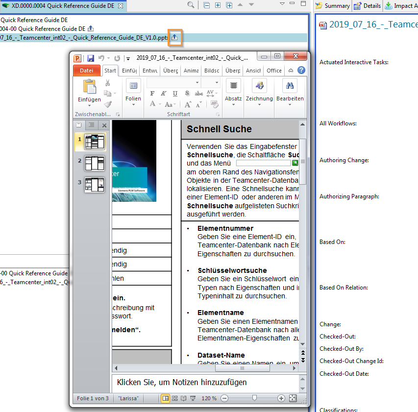 Now simply drag and drop the desired document onto the Revision item. Confirm with OK to check the document in to Teamcenter.