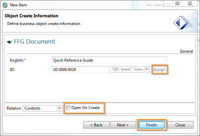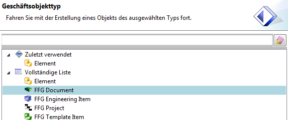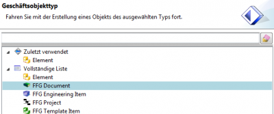 To create a new Office document please go to File → New → Item… and select the element “FFG Document”.