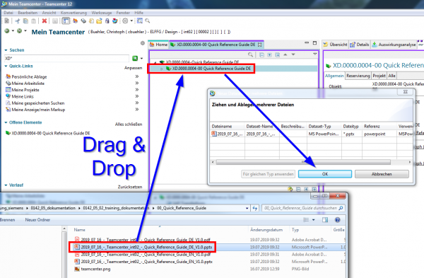 Now simply drag and drop the desired document onto the Revision item. Confirm with OK to check the document in to Teamcenter.