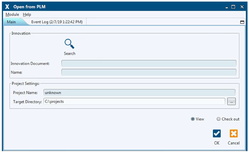 | PLM: | Opens a search dialog for projects saved in Teamcenter. |