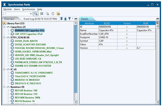 | Synchronize: | Synchronizes the selected parts between the library and Teamcenter. |