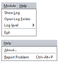 The menu bar is part of all module dialogs and contains the entries Modules and Help.