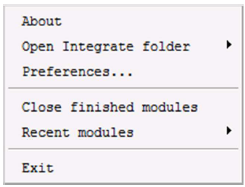 | Open Integrate folder: | Opens the directories INTEGRATE_HOME or INTEGRATE_PRODUCT_HOME . |
