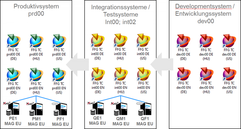 - A produktív rendszer prd00 napi munkához - Több integrációs rendszer / tesztrendszer int00; int02 - Egy fejlesztői rendszer dev00, amelyhez csak az adminisztrátorok férhetnek hozzá