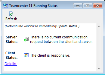 Mit dem Symbolen für den Server und den Benutzeroberflächenstatus wird der aktuelle Status der Rich ClientBenutzeroberfläche und des TeamcenterServers angezeigt.