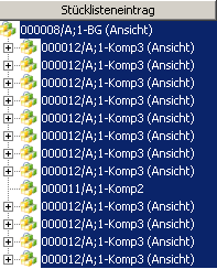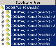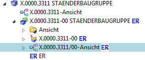 ![]() | Der Struktur-Navigationsbaum ermöglicht die Navigation in der Produktstruktur sowie die Erweiterung oder Reduzierung der Knoten zur Anzeige entsprechender Daten. Die Symbole in der Baumstruktur geben den Zweck jedes Knoten an. Die Eigenschaftsspalten rechts neben der Kennung können an Ihre Bedürfnisse angepasst werden. |