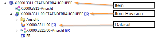 Ein Item (Element) in Teamcenter ist eine Struktur eines verbundenen Objektes. Die grundsätzliche Struktur eines jeden Items besteht aus folgenden Objekten: