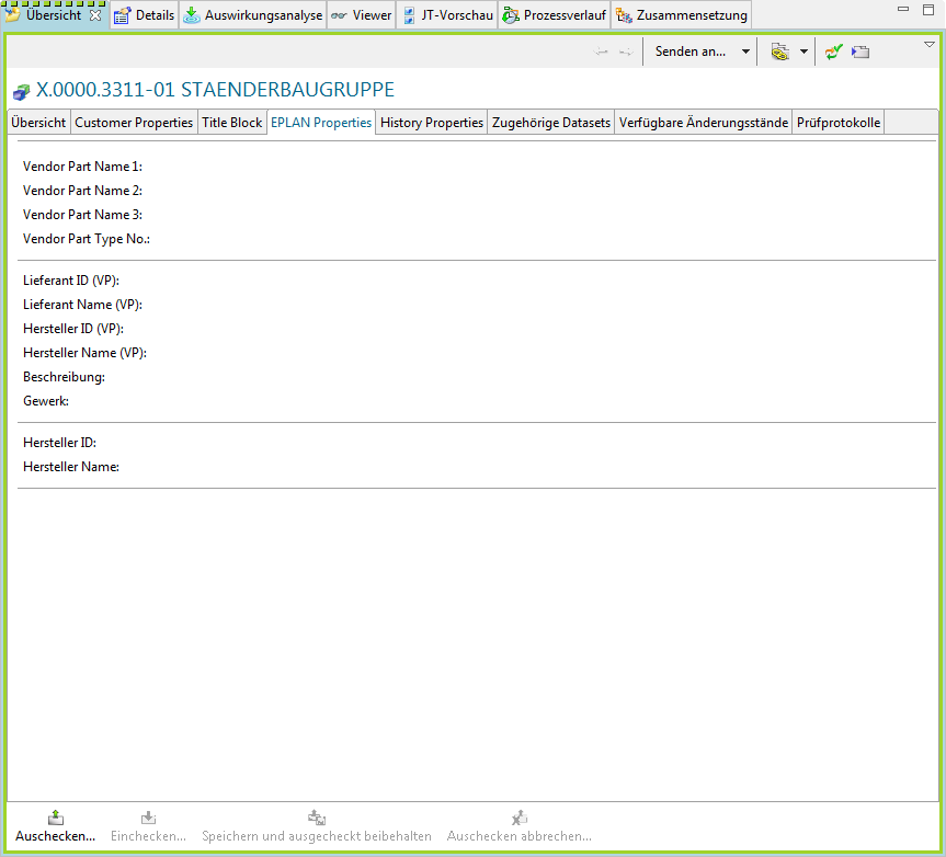 In der Registerkarte EPLAN Properties werden alle Metadaten über die EPLAN Integration befüllt.