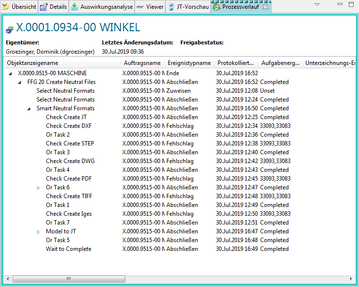 Der Workflow-Viewer dient zur Visualisierung des Workflows des aktuell ausgewählten Items. Hier kann geprüft werden, in welcher Aufgabe der Workflow aktuell steht.