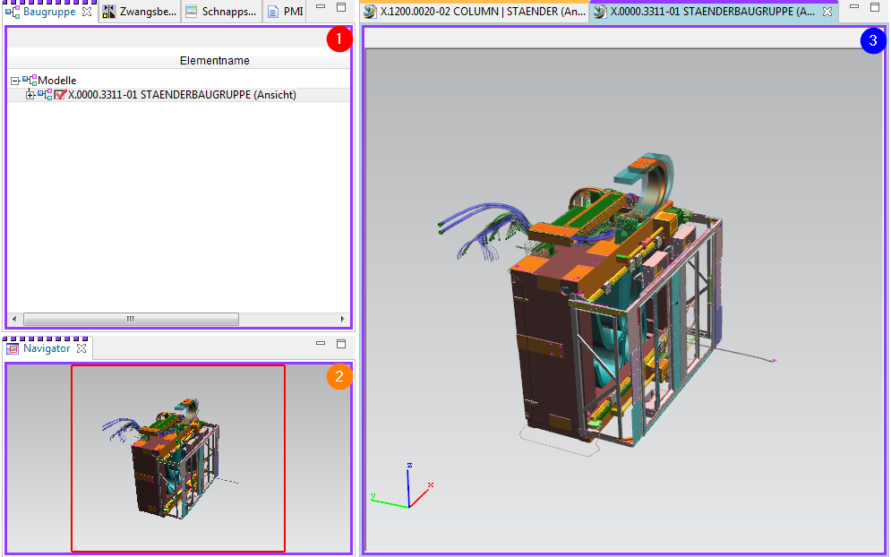 Wenn einer Revision bzw. einem gewählten Knoten ein JT-Dataset zugeordnet ist, wird dieses in der Ansicht JT-Vorschau dargestellt.